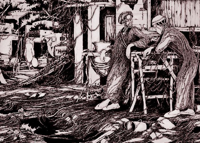 لا تزال لغة الرسم في الوطن العربي تتعثر بمفردات مستعارة من خارجه. مفردات سعى الرسامون إلى تهذيبها، غير أن أصابع الصائغ هي التي انتصرت أخيرا. وهي أصابع لا تقبل الفوضى. لن يحل الضجر المشكلة. هناك لغة تقبل التفاوض، لغة اشتقاقية قريبة من لغة المعابد القديمة: الآلهة المتعددة والعبد الوحيد. صار الرسام العربي خادما للغة سواه. لغة يخدمها الرسم في لحظة تصوير استثنائية.