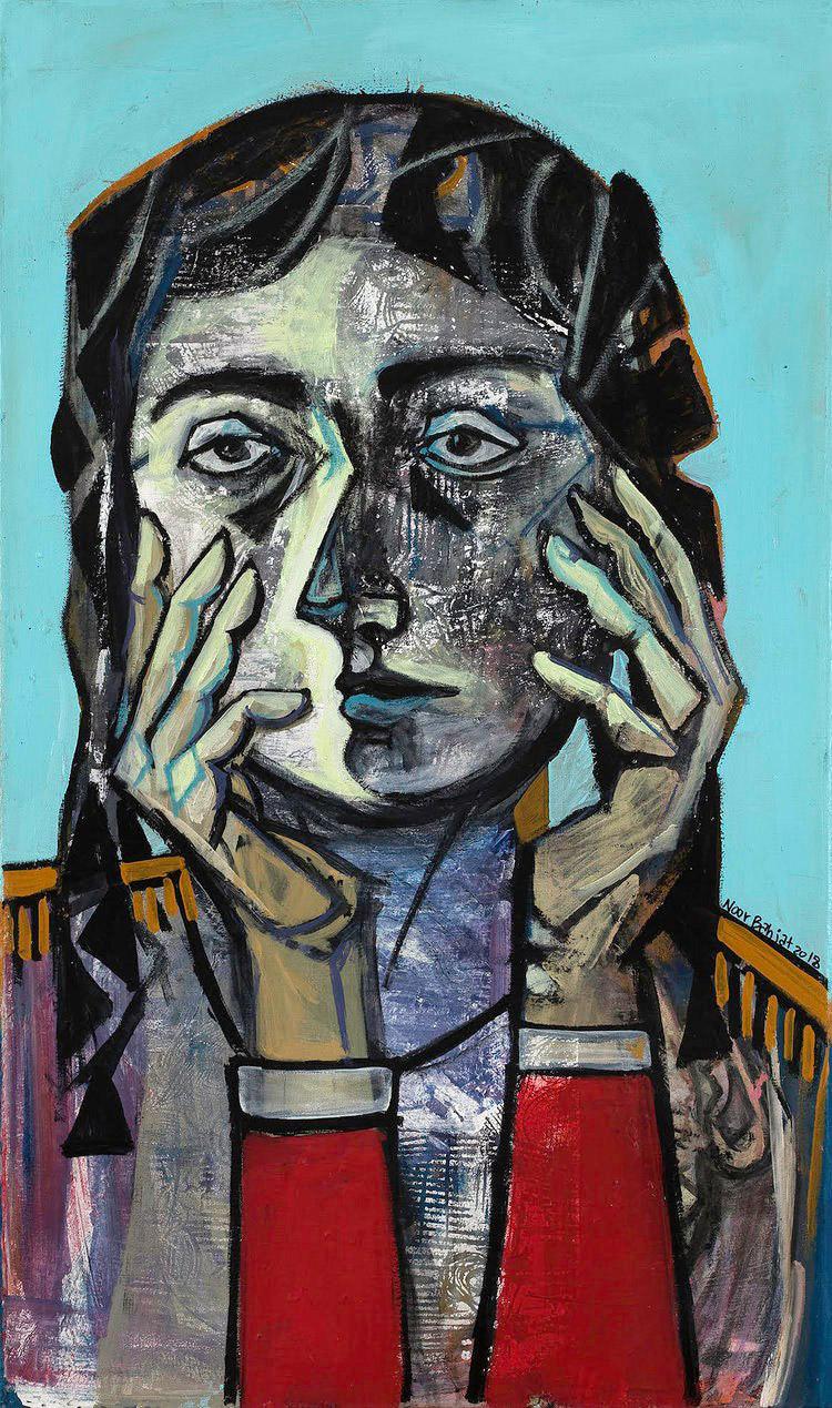 بعد تناول الطّعام وشرب الشّاي، مدّ يده ليحتوي يدها التي بدت صغيرة وباردة حدّ التجمّد، ثمّ لم تلبث أن استكانت داخل الكفّ الخشن. سحبها وراءه فتبعته دون أن تتكلّم، فاقتادها إلى مرسمه وهو يمسك بمعصمها بأنامل مرتعشة. عندما تخطّت العتبة سمعت صوت مقطوعة موسيقية هادئة لـ”شوبان”، وشاهدت لوحات معلّقة بعناية على الجدران، وعلب ألوان زيتيّة ومائيّة موضوعة بنظام على طاولة تحتلّ وسط المكان، وأمام الطّاولة لوحة مغطاة بقماشة بيضاء.