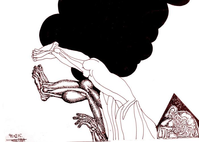 وَتُقَسِّمُ وَجْهَهَا إِلَى خُطُوطٍ