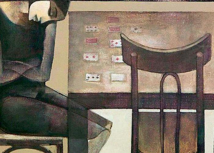 على الكنبة يجلسان، جنباً إلى جنب، يده في يدها، نحيلان، مشعثا الشّعر، جفونهما السفليّة منتفخة ومتهدّلة. إنهما هناك منذ زمن طويل. ثمة طبقة سميكة من الغبار تغطّيهما، وثمة عناكب بنت بيوتها في زوايا جسديهما الثابتين. ولا حتى رفّة جفن: العيون مفتوحة ومسمّرة بالحائط المقابل.