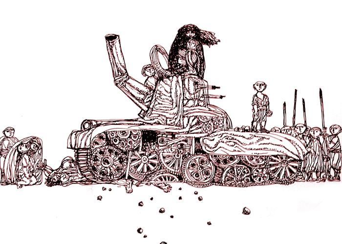 لتصبح المسؤولية عن الهمجية والنكوص إليها، معممة على الضحايا والجلادين، دون النظر في التفاصيل، وإلى الآلية الشيطانية لصناعة العدو التي اتبعها الاستبداد لتحويل الثورات السلمية البيضاء التي رفعت الزهور والأفكار المتقدمة، للإبقاء على خصم من جنس الاستبداد، يبرّر وجوده ويجعل منه شريكاً في الحرب على الإرهاب الذي أراد له أن يصبغ الثورات كلها على امتداد الساحة العربية.