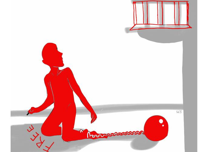 ومع ما نعانيه نحن العرب من الاختيار-الاختبار-المحنة: علينا أن نختار بين الأمن وبين الحرية‭.‬ وكأنهما لا يجتمعان، تلك قصة حياة الإنسان عبر العصور، راعيًا للغنم كان أم رائدًا للفضاء، منذ سبعة آلاف عام أو بعد مثلها، وإن تتبّعنا أيّ مسار للبشرية لوجدنا ذلك جليًّا، يولد الإنسان حرًّا لكنه ينزح تحت أغلال العبودية، بتنازله طواعية عن جزء منها -كبر أو صغر- أو باستلابها منه -كلها في الأغلب- إما طمعًا فيما يملك أو فيه هو، لاستخدامه أو للاحتماء به، باسم الأرض أو باسم السماء، باسم القوة أو باسم الشهوة، إنها بامتياز قصة الإنسان على الأرض، وقصة الشاعر الذي يحاول تحرير الجمال من فك القراصنة الغلاظ‭.‬